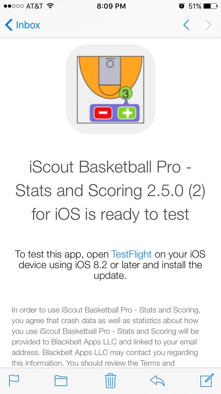 The beta for iScout Basketball is managed by Apples TestFlight program.