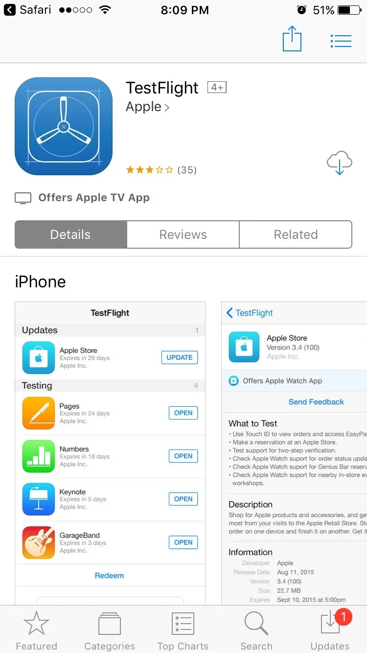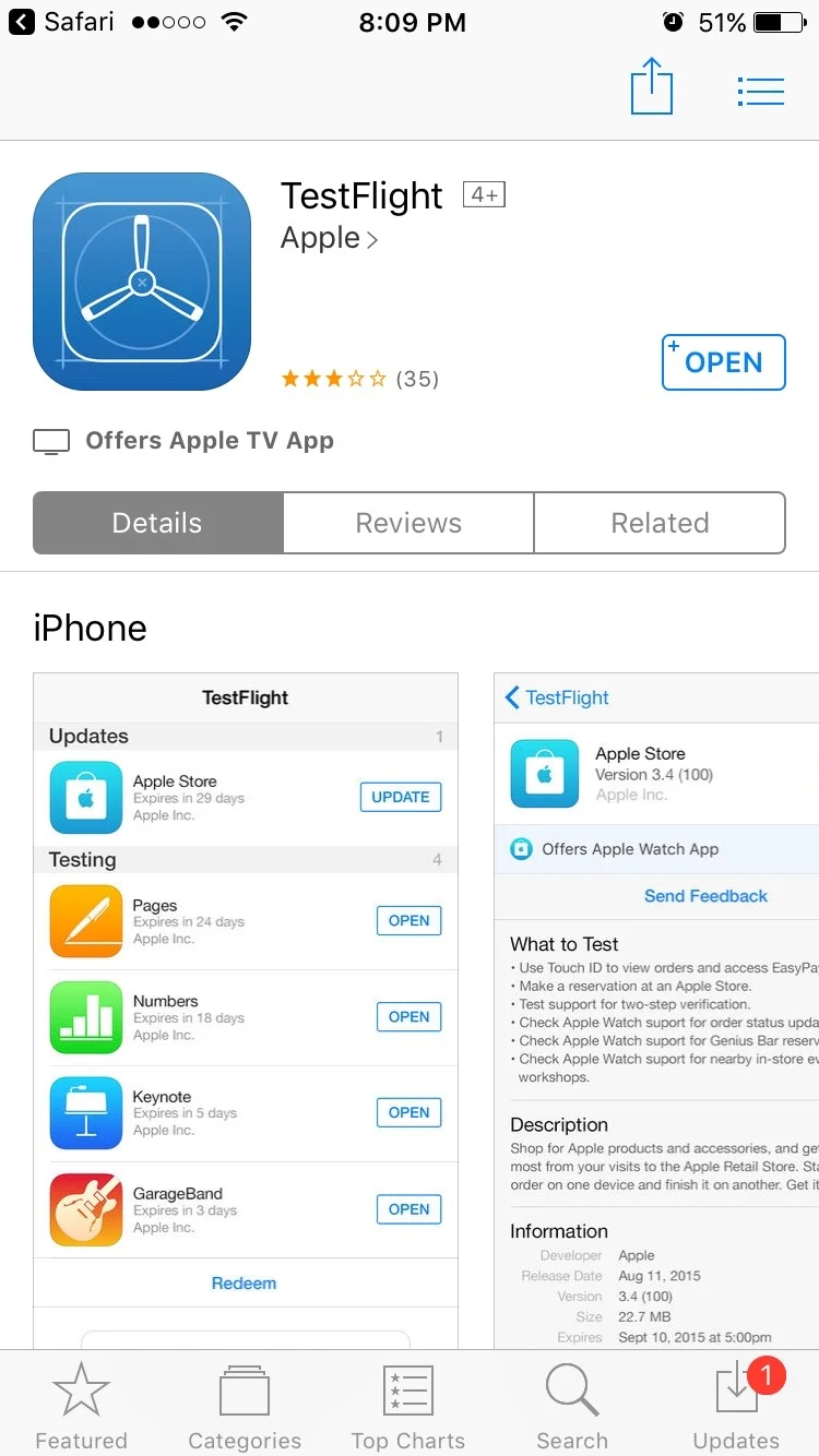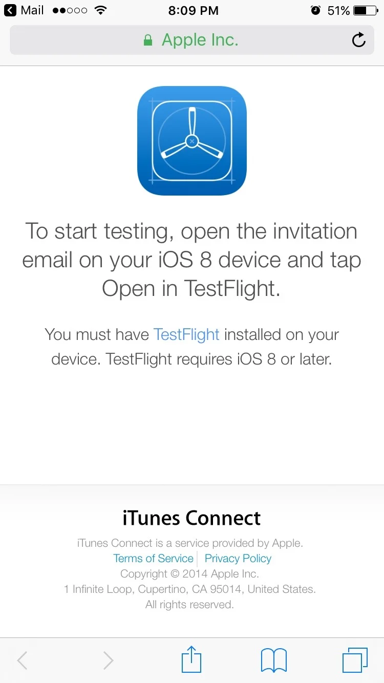 If you have not already installed TestFlight, Selecting the TestFlight link in the invitation will route you to where you can get the app.